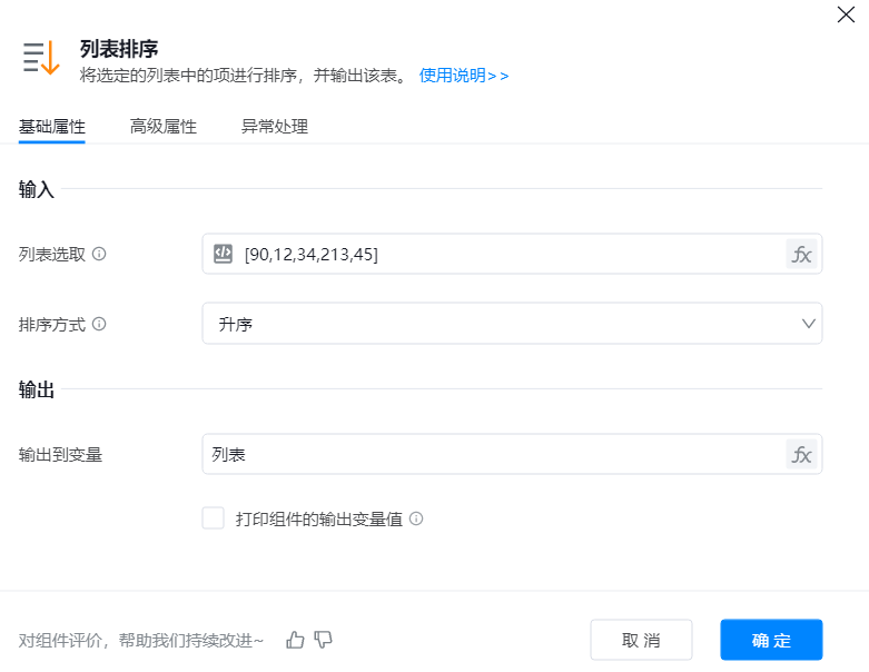 ● 排序方式:可选“升序”和“降序”两种排序方式。