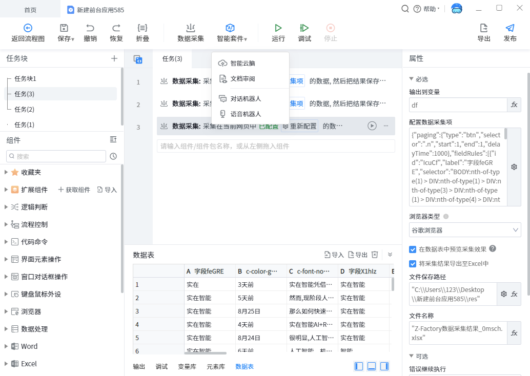 The results of data collection can be used and processed in many ways, which is suitable for various scenarios. For example, the collection results can be directly output; The result data can also be saved to variables to facilitate the reference of subsequent processes.