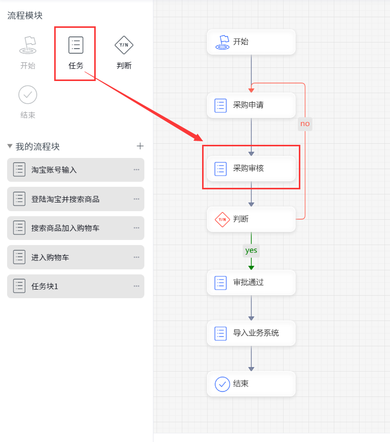 The whole business process is built by dragging task blocks. Each process needs a start process block, and there can be (or not) multiple end process blocks. Once the end process block is encountered, it will stop running. The process of the intermediate phase is configured according to the actual business.