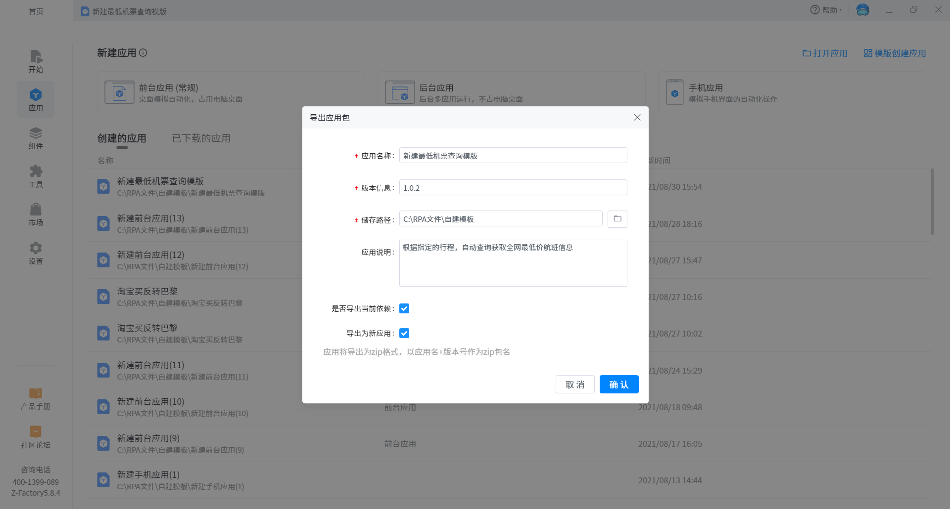•Export current dependencies:It supports exporting the dependent environment required by the current development application. If it is checked, it will not be unable to execute due to environmental problems when sharing it with others.