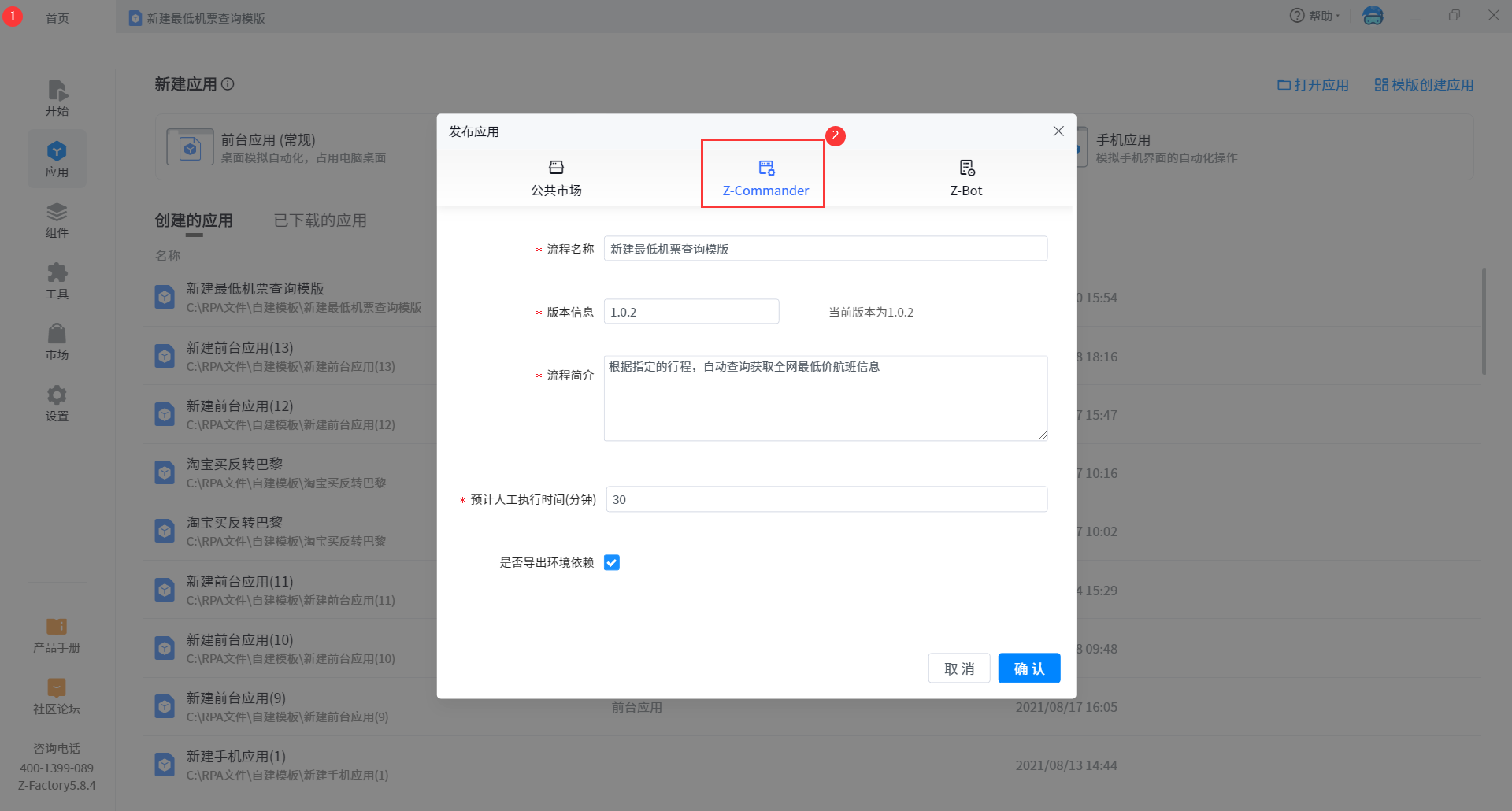 Step 2No approval is required for publishing to z-commander. After publishing, you can log in to z-commander to view the published data in process management. At the same time, you can select process application in task management to create tasks for z-bot.