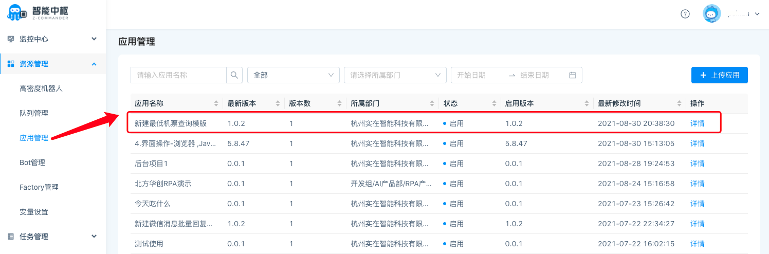 Step 4Developers can download their own application packages from the market, and other RPA users are also downloading application packages from the public market.