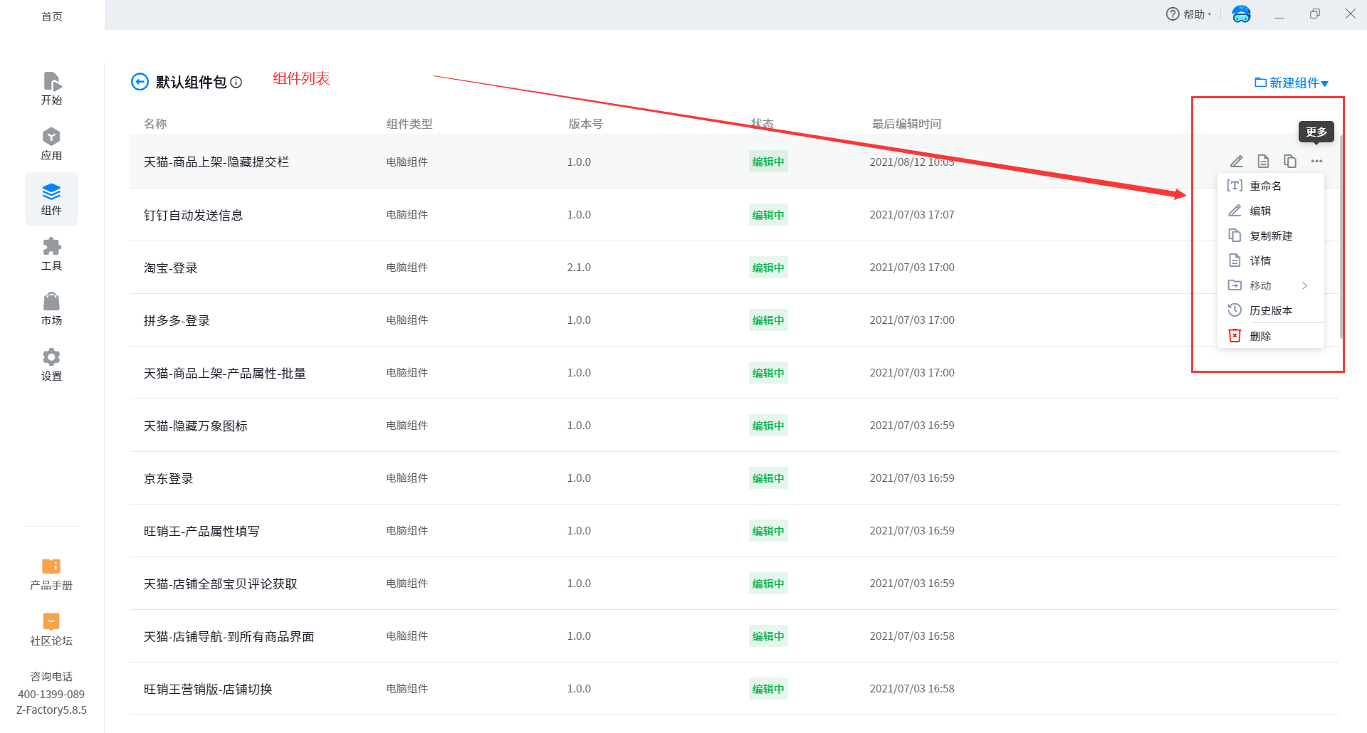 1. Component list is a list of component data contained in the current component package, which is convenient for users to view and manage.