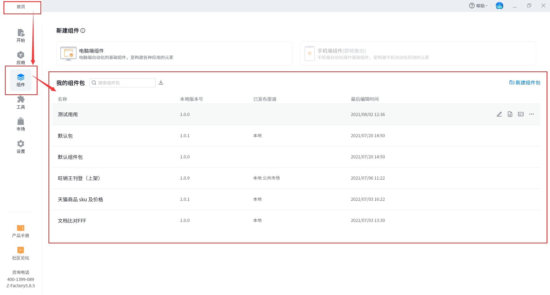 Component packages are managed on the component page of the factory home page. You can create new component packages or delete component packages. Component packages manage the local self built component data of the current developer. If the developer changes another computer, the self built components cannot be viewed.
