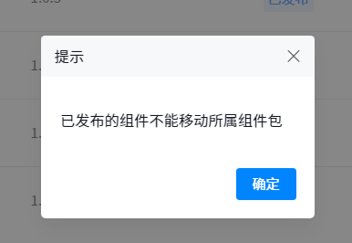 •Move:Unpublished components in the current component package or newly copied components can be moved to other component packages to facilitate users to reclassify components. After moving, this component cannot be viewed in this component list. Published components are not allowed to be moved, and a prompt will be given when moving.