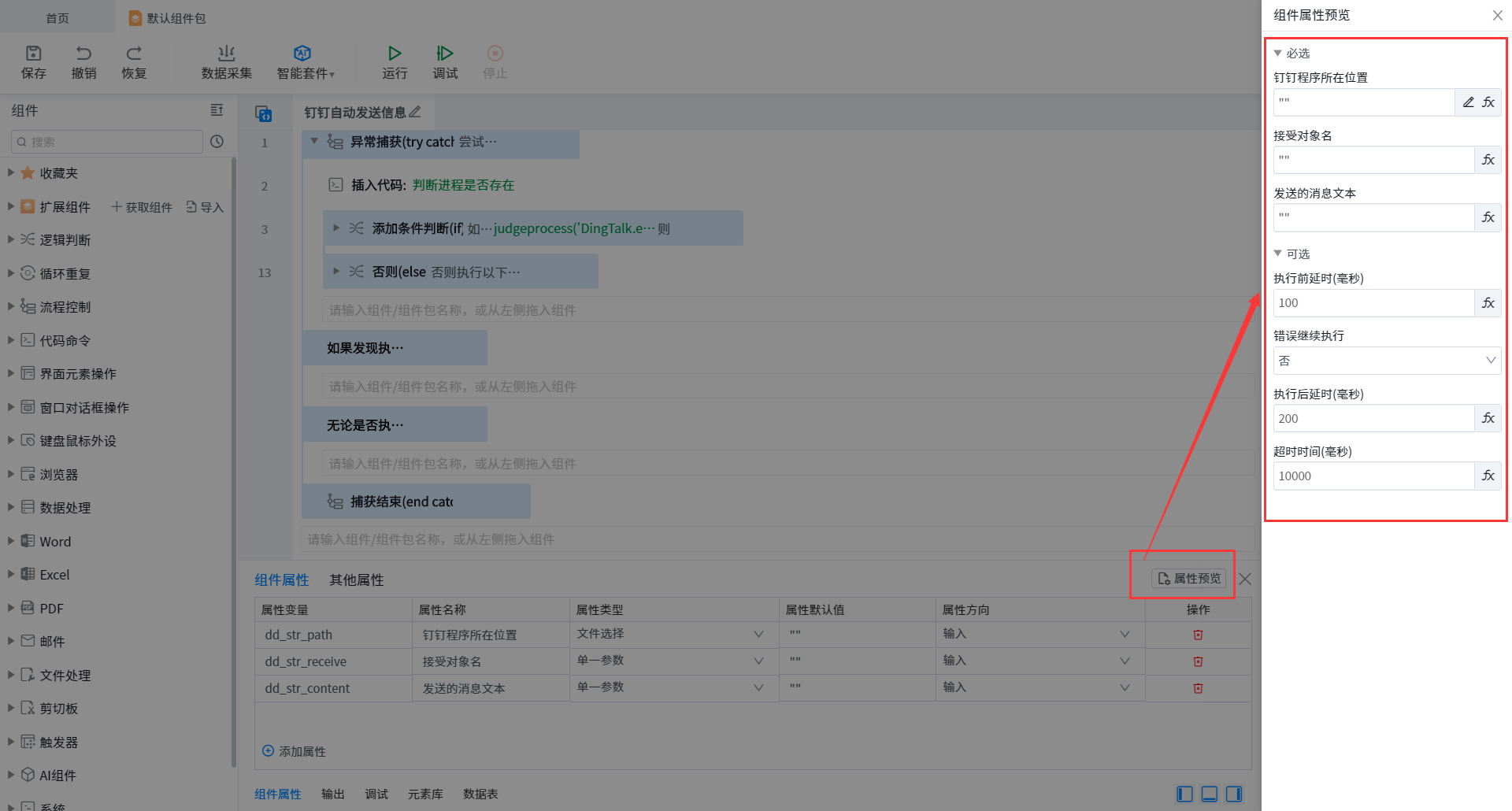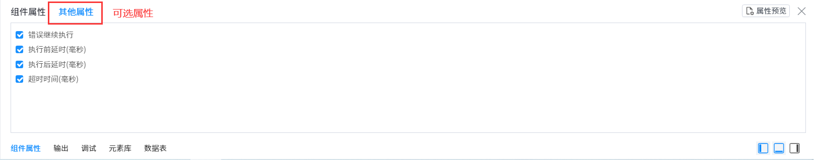 • Property Preview:After adding self built component properties, click & ldquo; Attribute preview & rdquo; View component property settings.