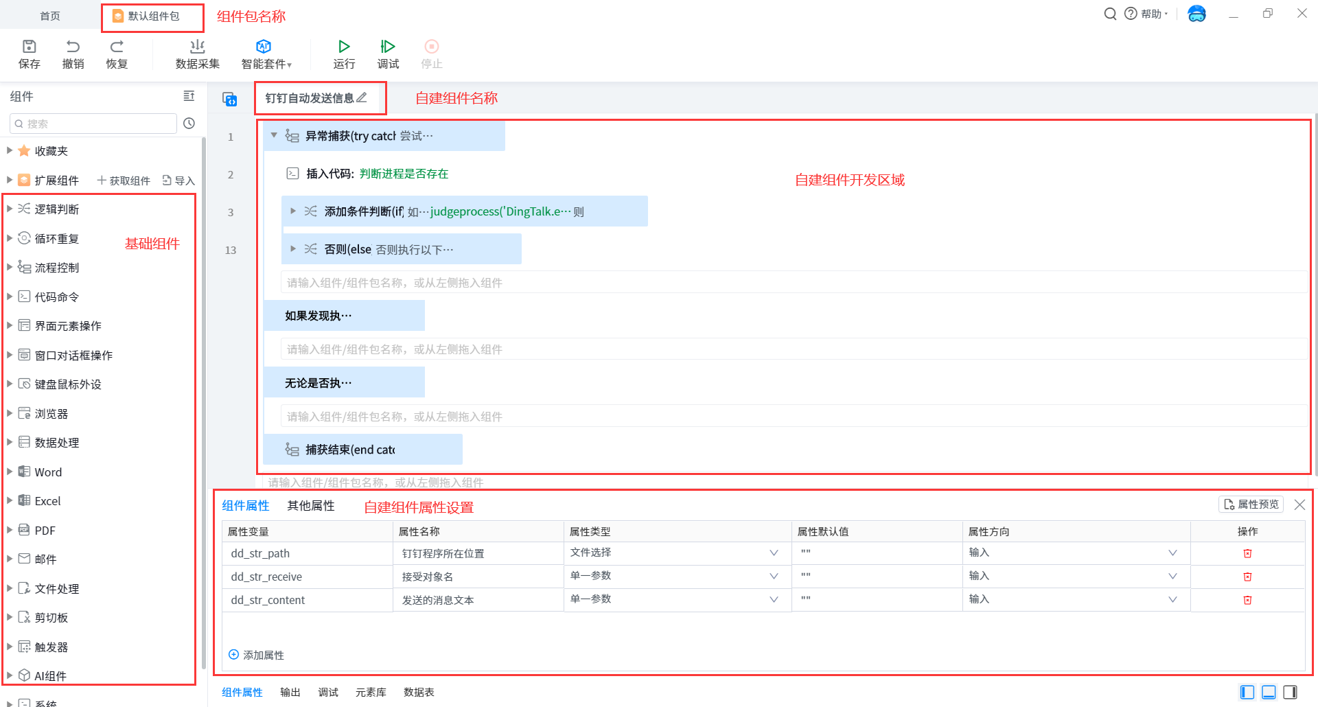 •Component name:It will be displayed at the small pen head in the editing area and in the component list in the component package. It is also used to distinguish the field names of self built components.