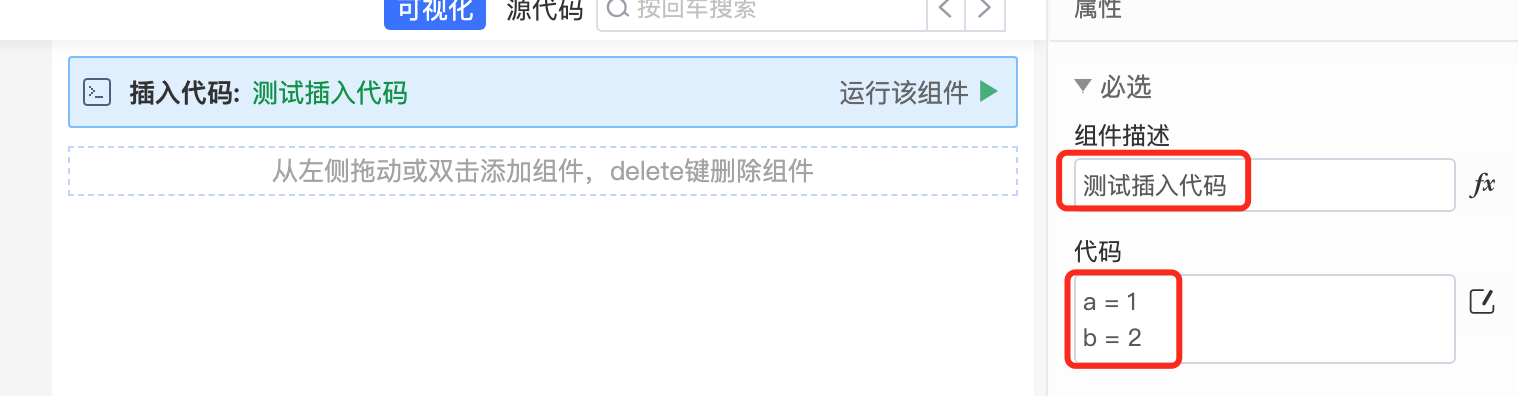 The insert code component is a visual component that can write Python code and code description within its scope.