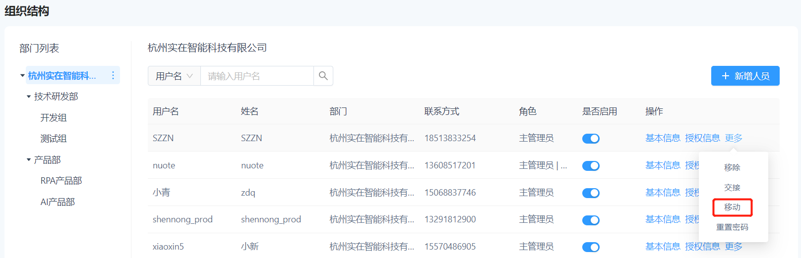 三、添加人员到部门