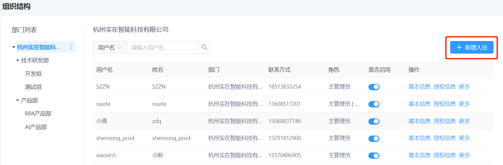 企业组织结构是进行企业流程运转、部门设置及职能规划等最基本的结构依据。在实际使用过程中,实在RPA考虑到不同部门的人员使用的流程和查看的数据会有所不同,因此对组织架构的维护必不可缺。