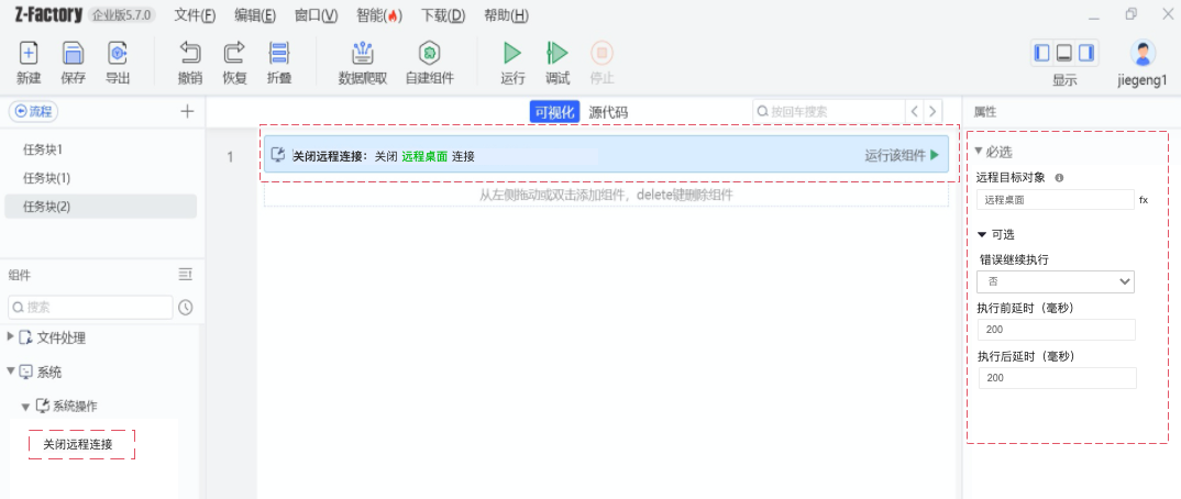 Step 1:When you need to pick remote desktop elements, you can use the connect remote desktop component in the factory to complete the remote desktop connection action. Then open the above installation program to start picking remote desktop elements and run to complete the remote desktop connection.