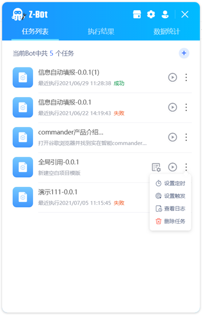Note: the setting timing only supports the login method using the activation code. The BOT logged in with the account and password sends the task through the commander. The timing setting of the task is set when the commander creates the task.