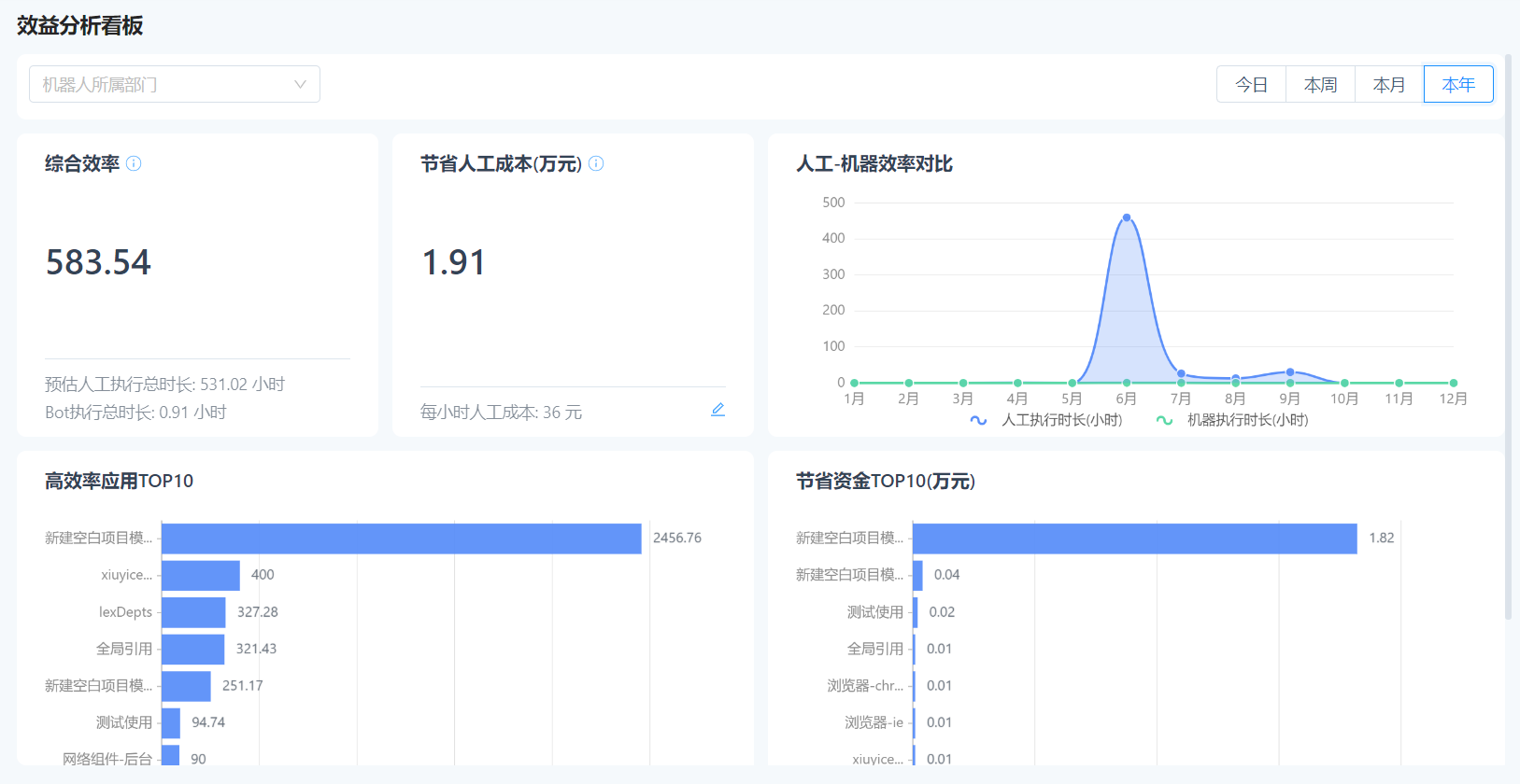 Fully understand the benefits brought to the enterprise by using digital employees. The benefits include two dimensions: efficiency improvement and cost saving. The hourly labor cost supports user-defined configuration. It is recommended to modify it into the actual average labor wage of the enterprise in time to ensure that the calculated labor cost saving data is more in line with the actual situation of the enterprise.