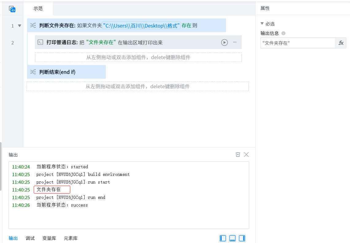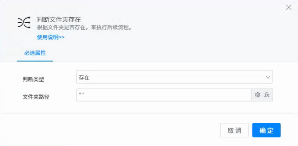 ●Judgment type: you can judge the status of the target folder. You can select & ldquo; & rdquo; Or & ldquo; & rdquo; does not exist;.
