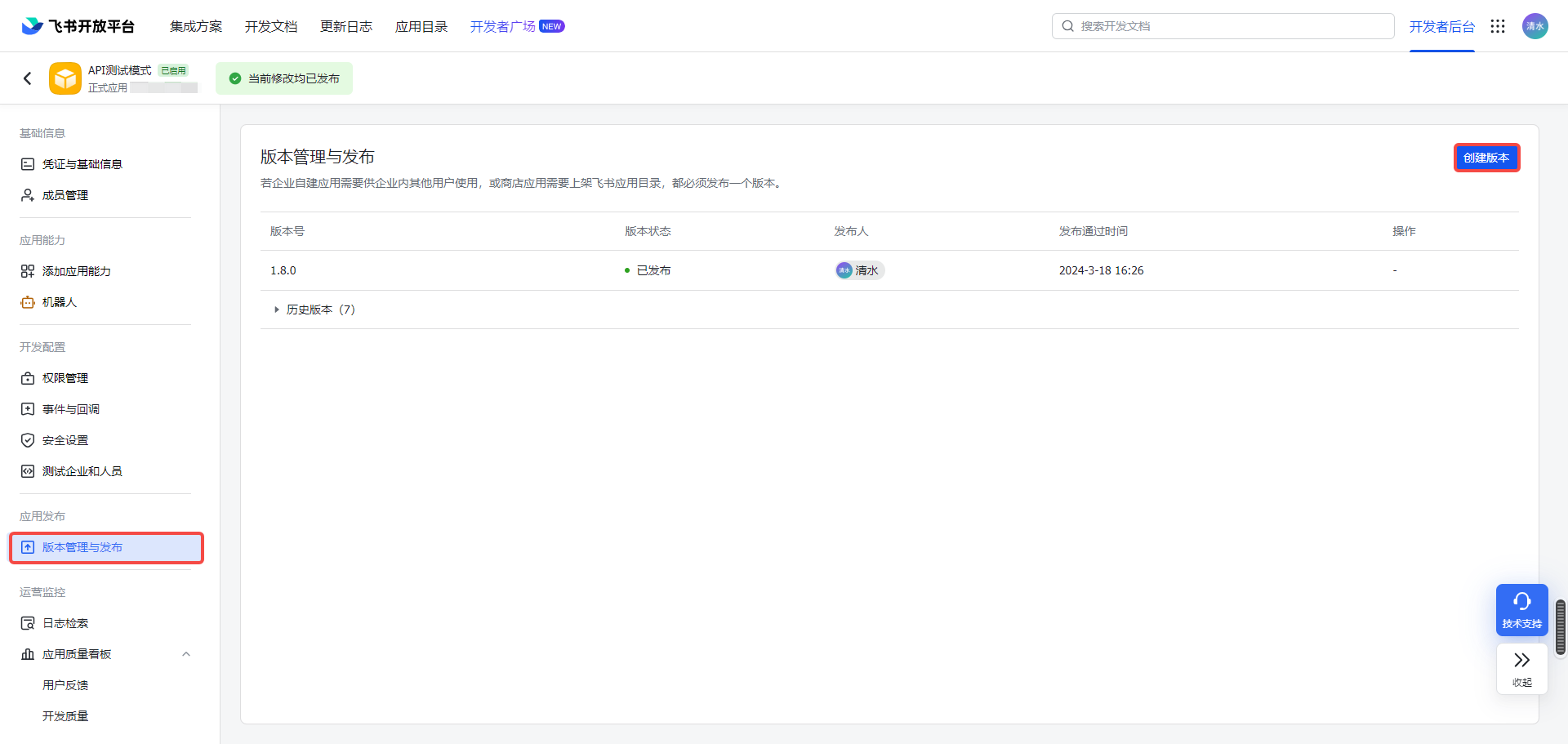 b、点击【版本管理与发布】-【创建版本】
