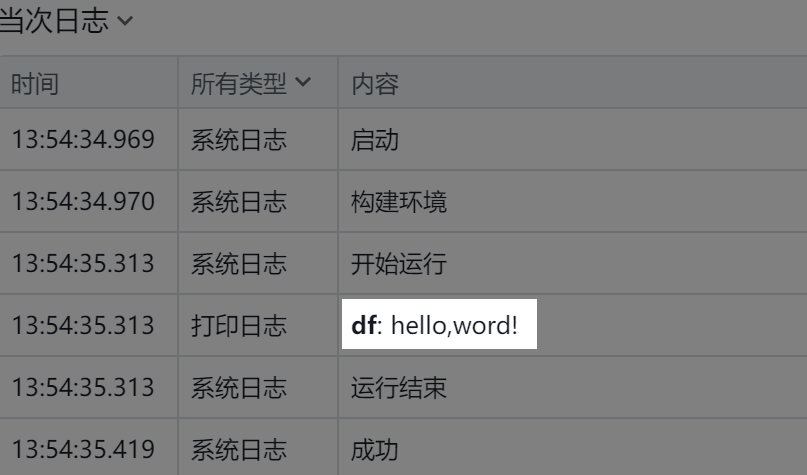 注:此组件需配合【调试输出】或【打印普通日志】组件一起使用。
