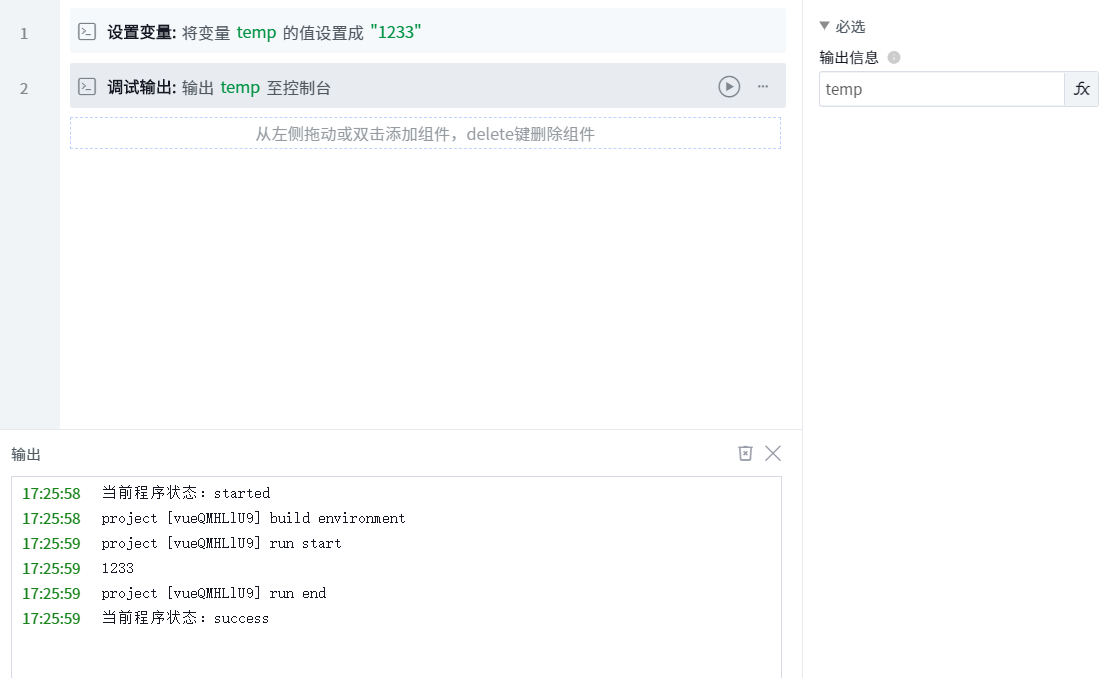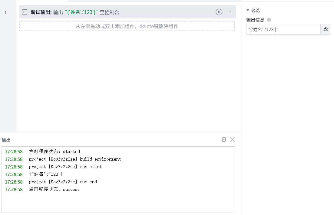 You can also directly output string, number or dictionary information, as shown in the following figure: