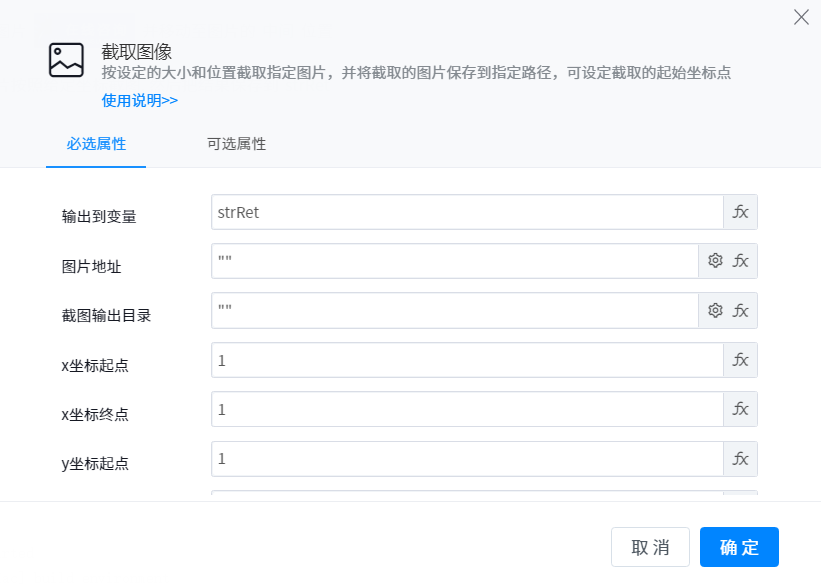 Intercept the specified picture according to the set size and position, save the intercepted picture to the specified path, and set the starting coordinate point of interception.