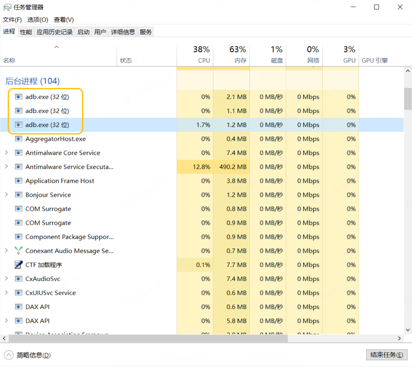 当脚本或自动化工具高频率启动 ADB 命令,而之前的进程因为通信超时、网络波动或手机未响应而处于“挂起”状态时,系统会堆积大量无法释放的 adb.exe。
