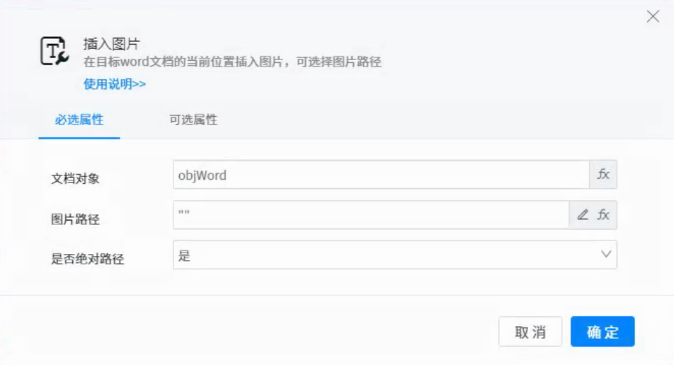 ● Picture path: represents the path of the picture to be inserted into the document. You can click the small buttons on the left and right to select the picture.