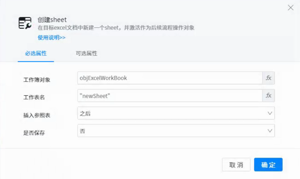 ● worksheet name: new table name, for example, & ldquo; New 1 & rdquo; Means to insert a new table named new 1 into the excel file.