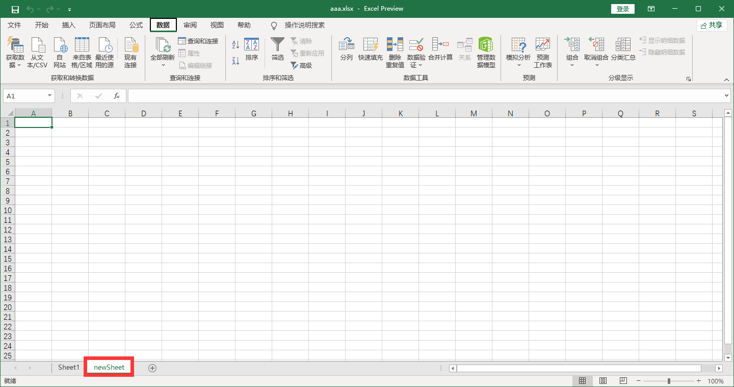 Open an excel file, and then create an excel file named & ldquo; newSheet” Table for.