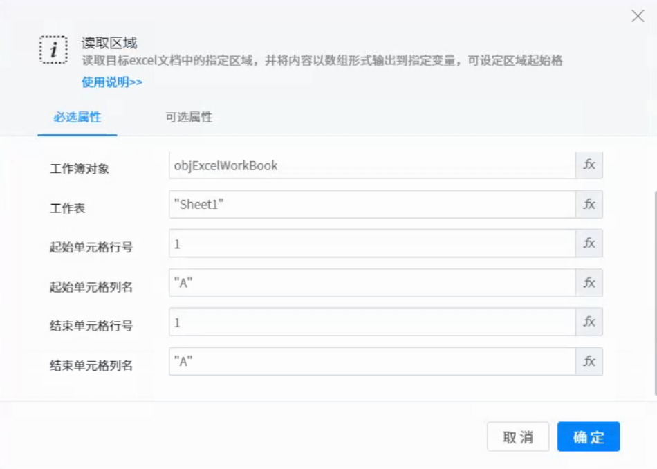 ● worksheet: the name of the worksheet to read in the workbook. For example, "Sheet1" means to open the first table in the workbook.