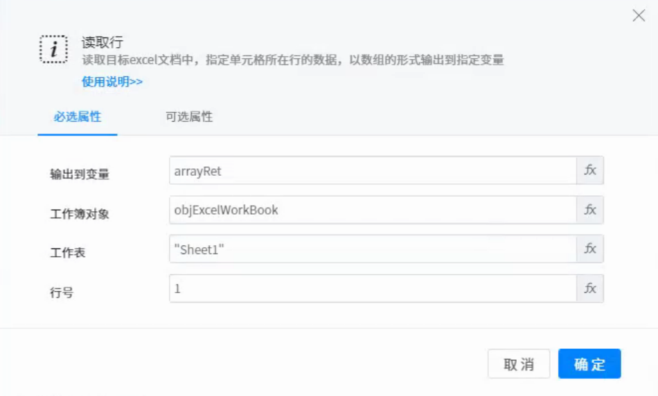 ● Worksheet: the name of the worksheet to read in the workbook. For example, "Sheet1" means to open the first table in the workbook.