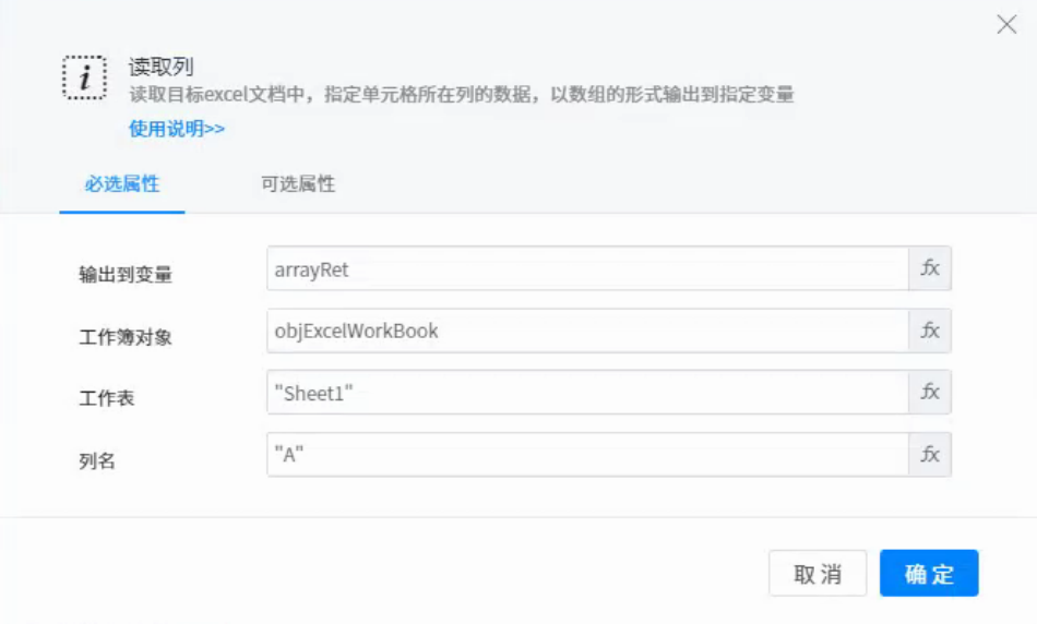 ● column name: get the column data of the cell, for example: "A1", get the column data of cell A1.