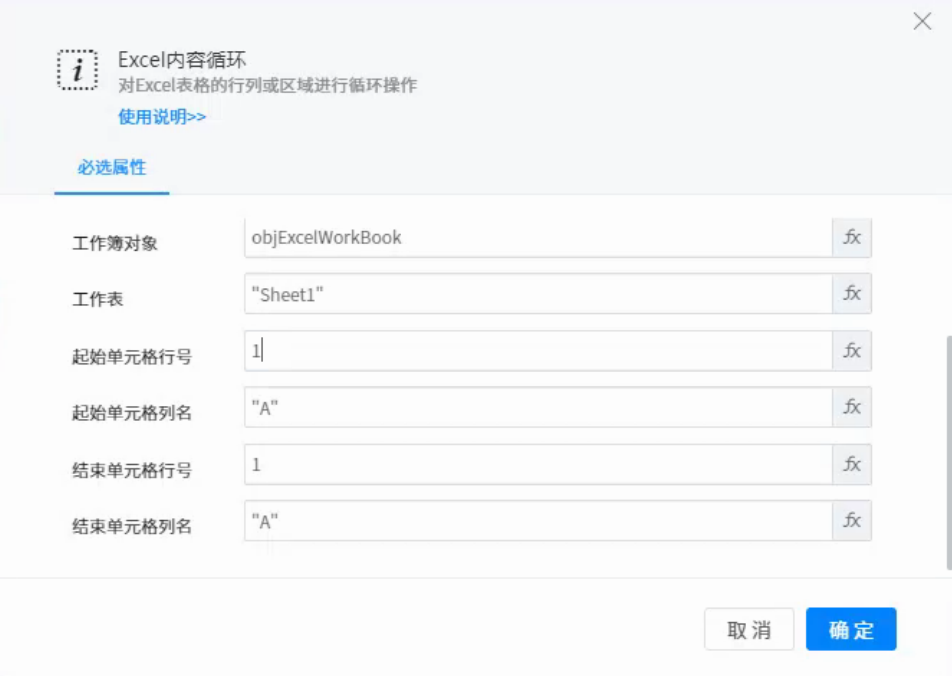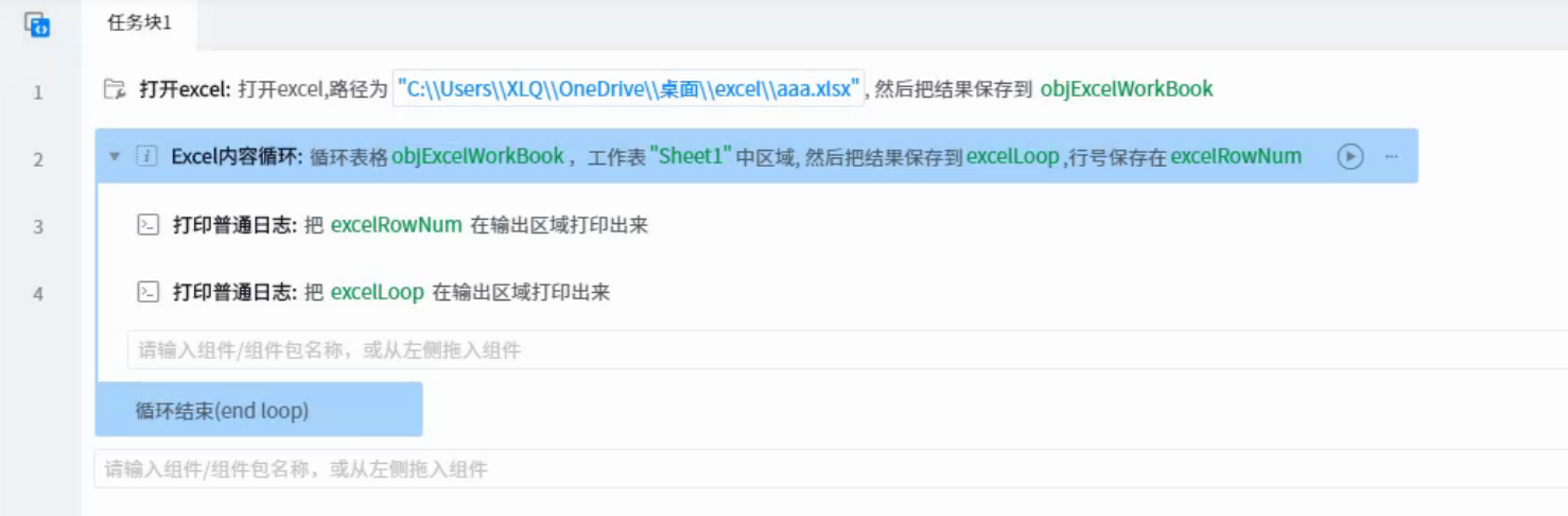 ● workbook objects: the excel document object to be cycled. The excel document object can be & ldquo; Create a new excel & rdquo; Or & ldquo; Open excel & rdquo; Output to variable in these two components.