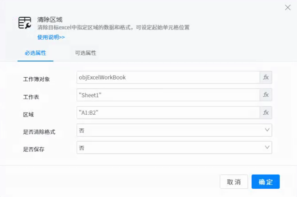 ●region: an area to be cleared, for example & ldquo; A1: B2 "indicates that the area value from A1 to B2 is cleared and becomes blank.