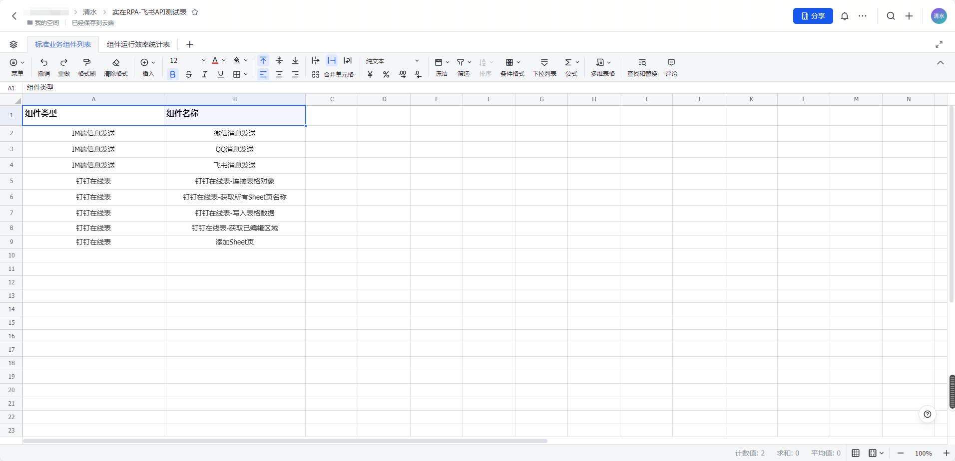- 飞书表格对象:字典;飞书表格连接对象,可使用【飞书在线表-连接表格对象】组件进行获取