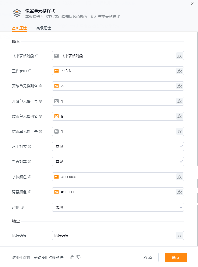 - 字体颜色:字符串;设置字体的颜色,可为空,为空时保留原表格的字体颜色;用十六进制颜色代码表示,如黑色:#000000