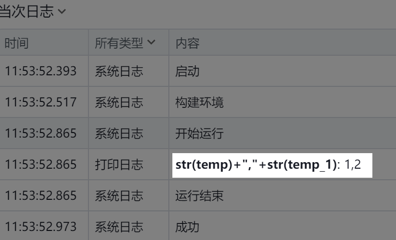 在输出区域打印”str(temp)+","+str(temp_1):1,2“