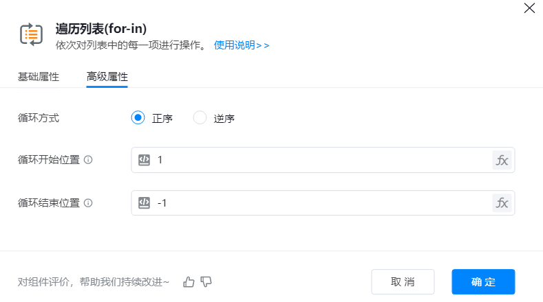 ● 循环方式:决定循环顺序,可选择”正序“或”逆序“。